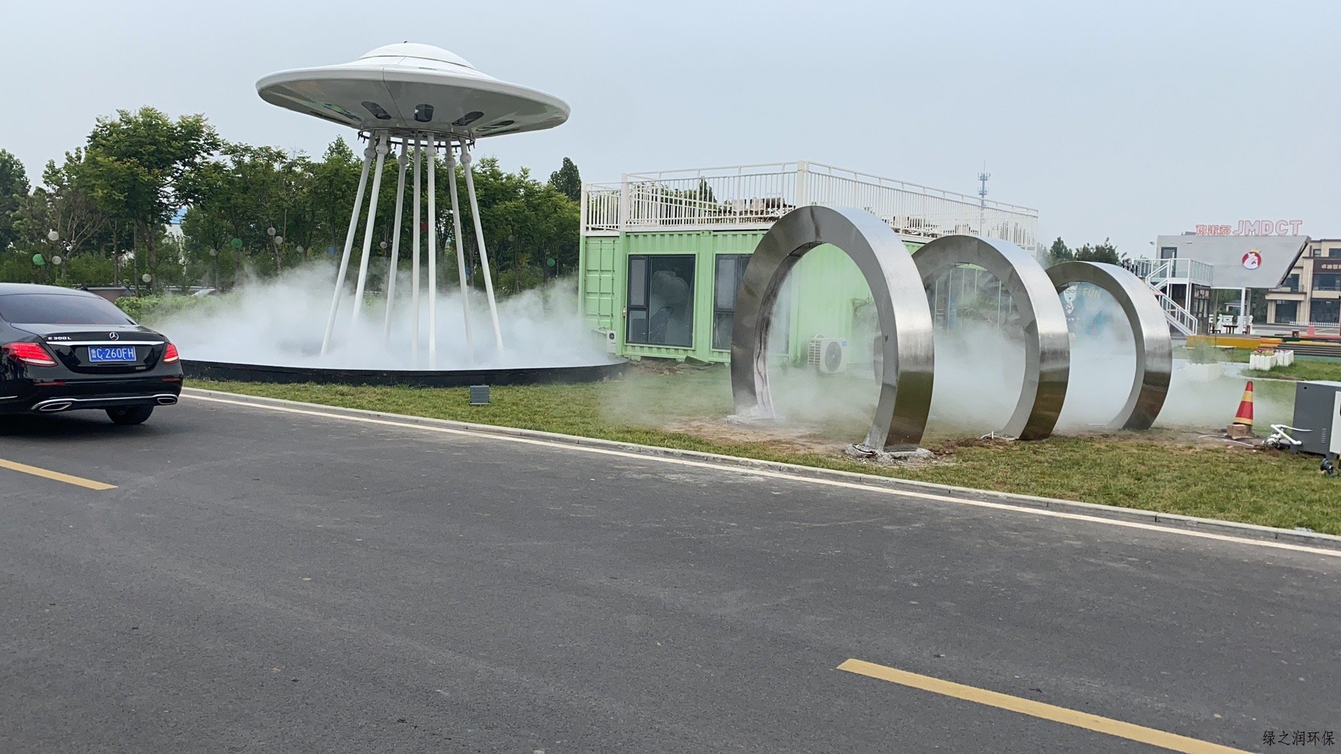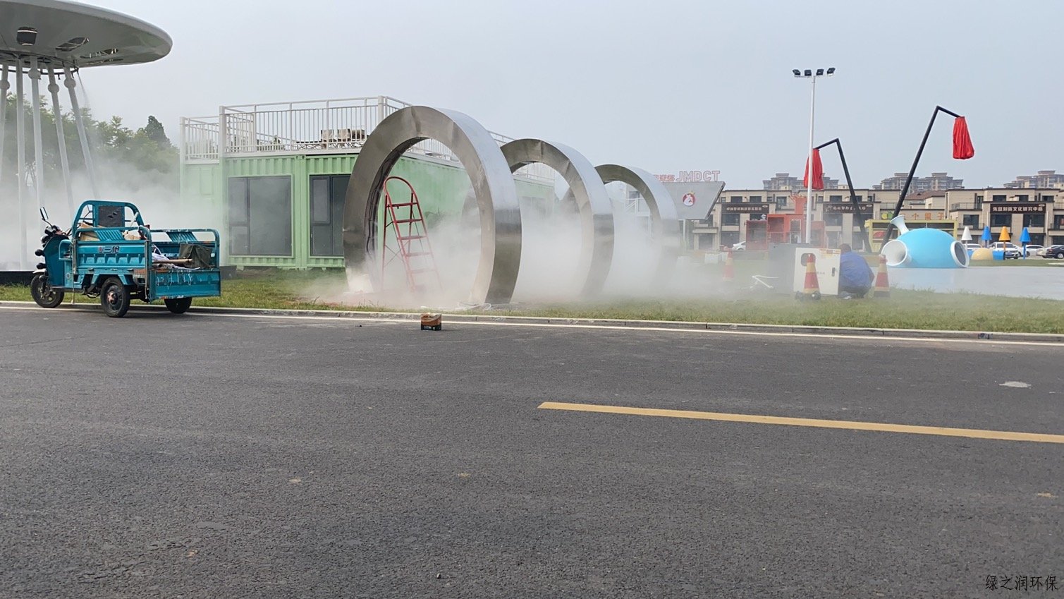 淄博瓷器城景观造雾系统一个主机带一个喷雾环