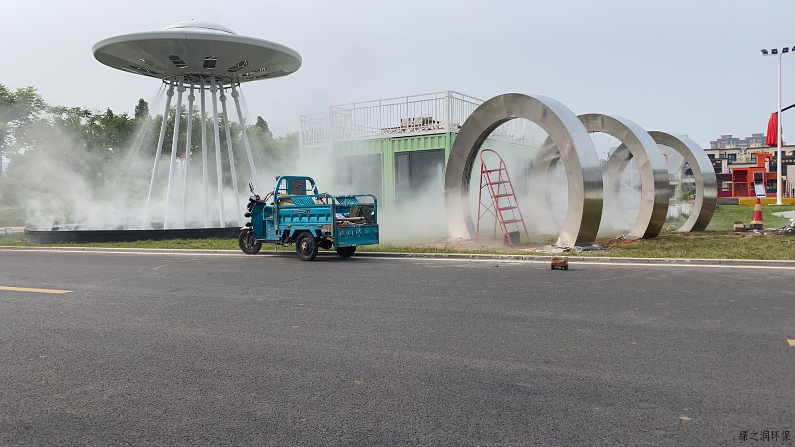 淄博瓷器城景观造雾系统一个主机带一个喷雾环